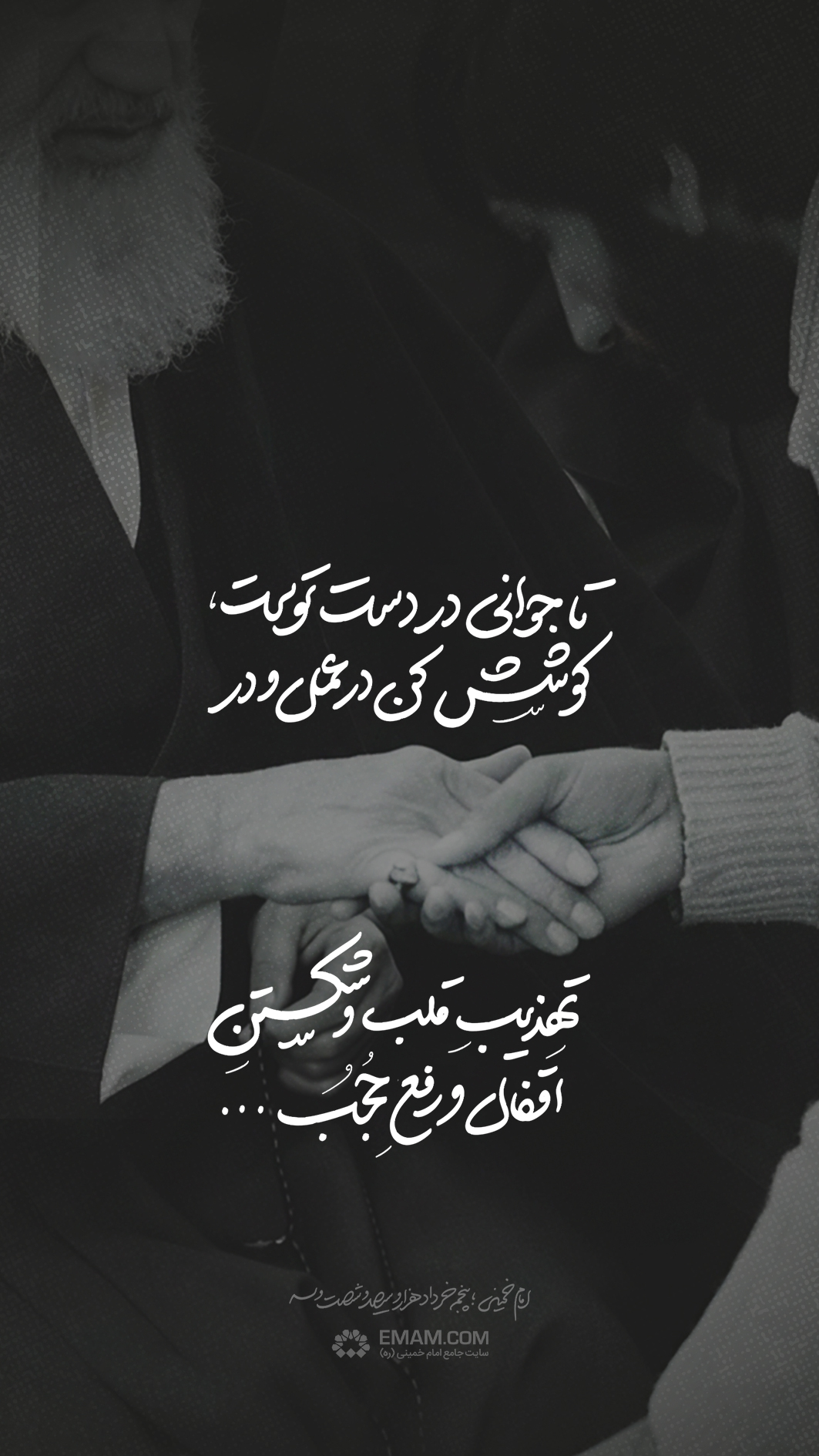 تا جوانی در دست تو است کوشش کن در عمل و در تهذیب قلب و در شکستن اقفال و رفع حُجُب... ۵ خرداد ۱۳۶۳