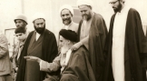امام خمینی(ره) در حاشیه یکی از دیدارهای عمومی در پشت بام منزل محل سکونت