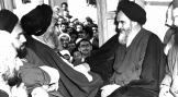 امام در حال گفتگو با آیت الله مرعشی نجفی در بیت آیت الله سیدمحمدرضا گلپایگانی