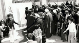 امام خمینی پس از آزادی از حبس و حصر درحال خروج از منزل
