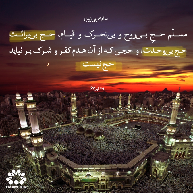 مسلّم حجِ بیروح و بیتحرک و قیام، حج بیبرائت، حج بی وحدت، و حجی که از آن هدم کفر و شرک بر نیاید، حج نیست. ۲۹ تیر ۱۳۶۷