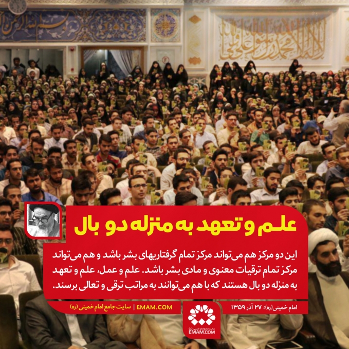 این دو مرکز هم می‌تواند مرکز تمام گرفتاریهای بشر باشد و هم می‌تواند مرکز تمام ترقیات معنوی و مادی بشر باشد. علم و عمل، علم و تعهد به منزله دو بال هستند که با هم می‌توانند به مراتب ترقی و تعالی برسند. ۲۷ آذر ۱۳۵۹